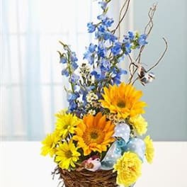 Price: $140.00 Fall Basket (mixed flowers, roses, sunflowers in lilies) Product Tags: Same-day Delivery
